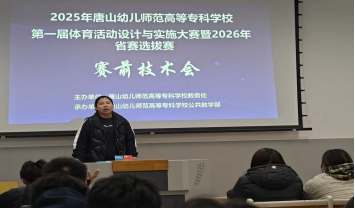 为深入贯彻落实国家教育强国行动计划和河北省教育强省规划纲要,11月12日至14日,由教务处主办、公共教学部承办的“2025年唐山幼儿师范高等专科学校第一届体育活动设计与实施大赛暨2026年省赛选拔赛”成功举办。